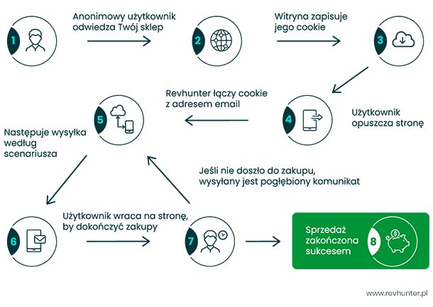 Revhunter powstał w odpowiedzi na problemy biznesów internetowych, jakimi są utracony ruch na stronach oraz porzucanie koszyków zakupowych. Przez trzy lata swojej działalności projekt zdobył szerokie grono zadowolonych klientów, spośród których największą część stanowią obecnie sklepy e-commerce, ale także biznesy usługowe z sektorów telekomunikacji czy travel. Revhunter dociera do osób odwiedzających strony internetowe i e-sklepy, które podczas wizyty nie dokonują konwersji i nie pozostawiają po sobie danych kontaktowych, choćby w postaci adresu e-mail np. w trakcie rejestracji. Dzięki wykorzystywanej technologii Revhunter może w pełni legalnie dotrzeć do takich osób i nie tylko wysłać wiadomość nakłaniającą do powrotu na stronę, ale także zaprezentować konkretne produkty, lub produkty rekomendowane, bądź z kategorii, które taka osoba oglądała podczas wizyty w sklepie. Co istotne, dzięki przejściu na model SaaS, osoby zarządzające sklepami ecommerce, są w stanie samodzielnie skonfigurować, monitorować i optymalizować prowadzone kampanie, korzystając z gotowych scenariuszy, jak i intuicyjnego kreatora wiadomości, w którym wystarczy wybrać ilość i rodzaj prezentowanych produktów, dodać logo i treść, nadać temat wiadomości i określić grupę odbiorców, do której ma być kierowana.
