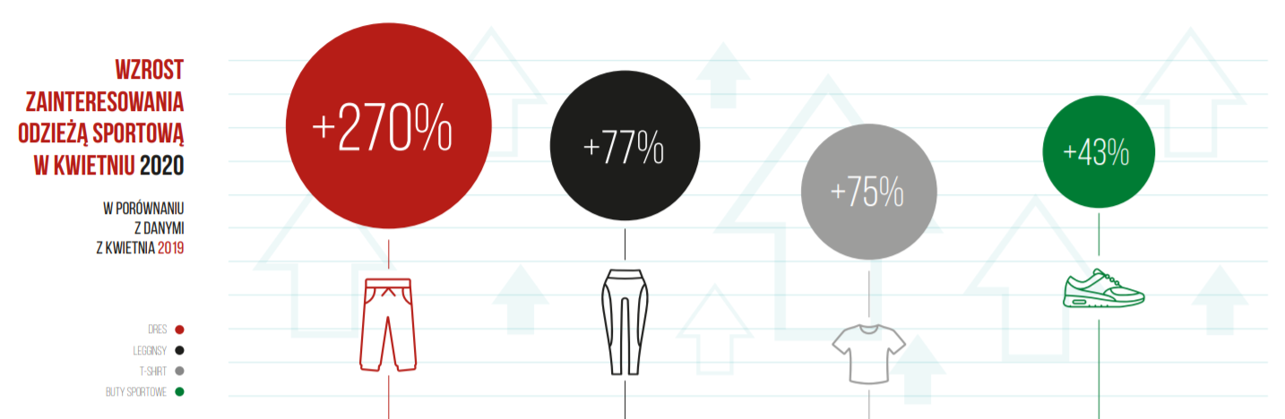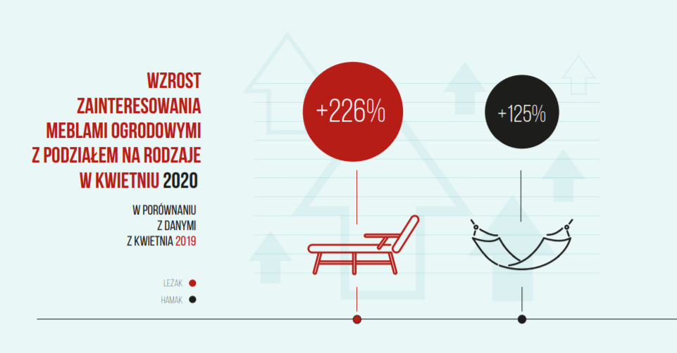 Pandemia trwa. W momencie wprowadzenia obostrzeń i zamknięcia granic większość z nas nie sądziła, że będą obowiązywać tak długo. Niestety, życie Polaków i ludzi na całym świecie zostało całkowicie przemodelowane. Konsumenci przeszli do świata online, ale to nie jedyna zmiana. Z danych zebranych przez Sales Intelligence wynika, że zaczęliśmy doceniać czas wolny i relaks w zaciszu domowym. Przykładem tego jest fakt, że np. w kwietniu br. zainteresowanie leżakami ogrodowymi wzrosło o 230 proc., a topowym produktem w kategorii „moda” okazał się być dres, którego wskaźnik popularności wzrósł o 270 proc. w porównaniu do danych z ubiegłego roku.