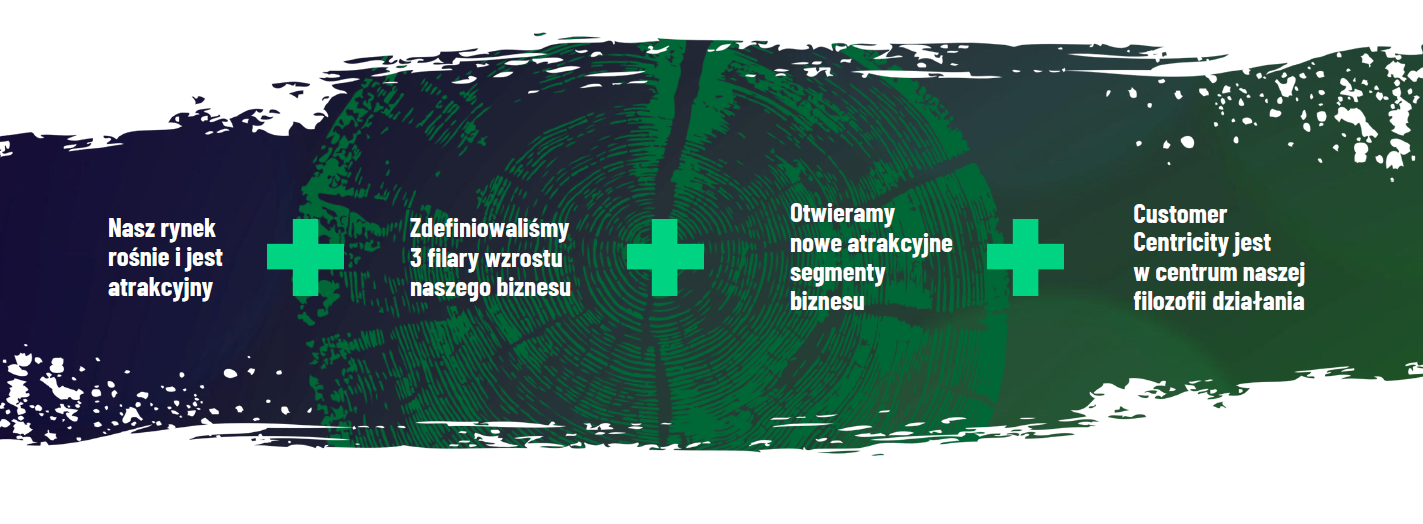 Zdefiniowaliśmy trzy filary strategii, które będą mieć zasadniczy wpływ na osiągnięcie naszej nowej wizji przedsiębiorstwa jako europejskiego lidera transformacji cyfrowej w obszarze marketingu i sprzedaży.